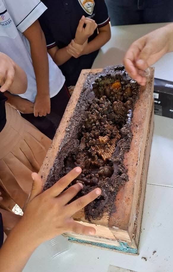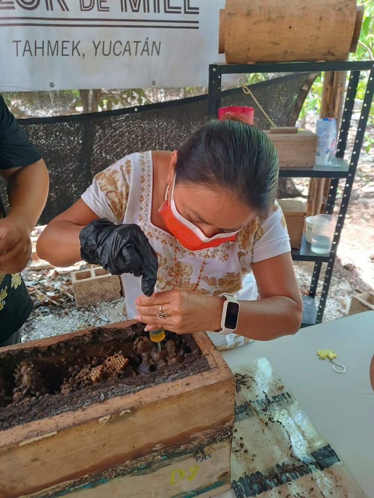 Junto a ella, se manejan especies como Scaptotrigona pectoralis y Tetragonisca angustula. Los meliponarios tradicionales, llamados nail kab, son espacios vivos donde se resguarda el conocimiento ancestral.